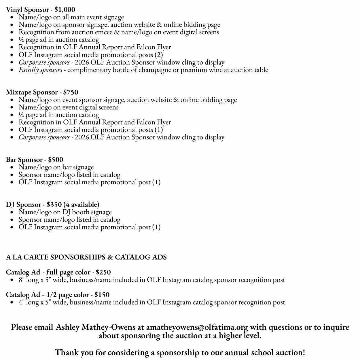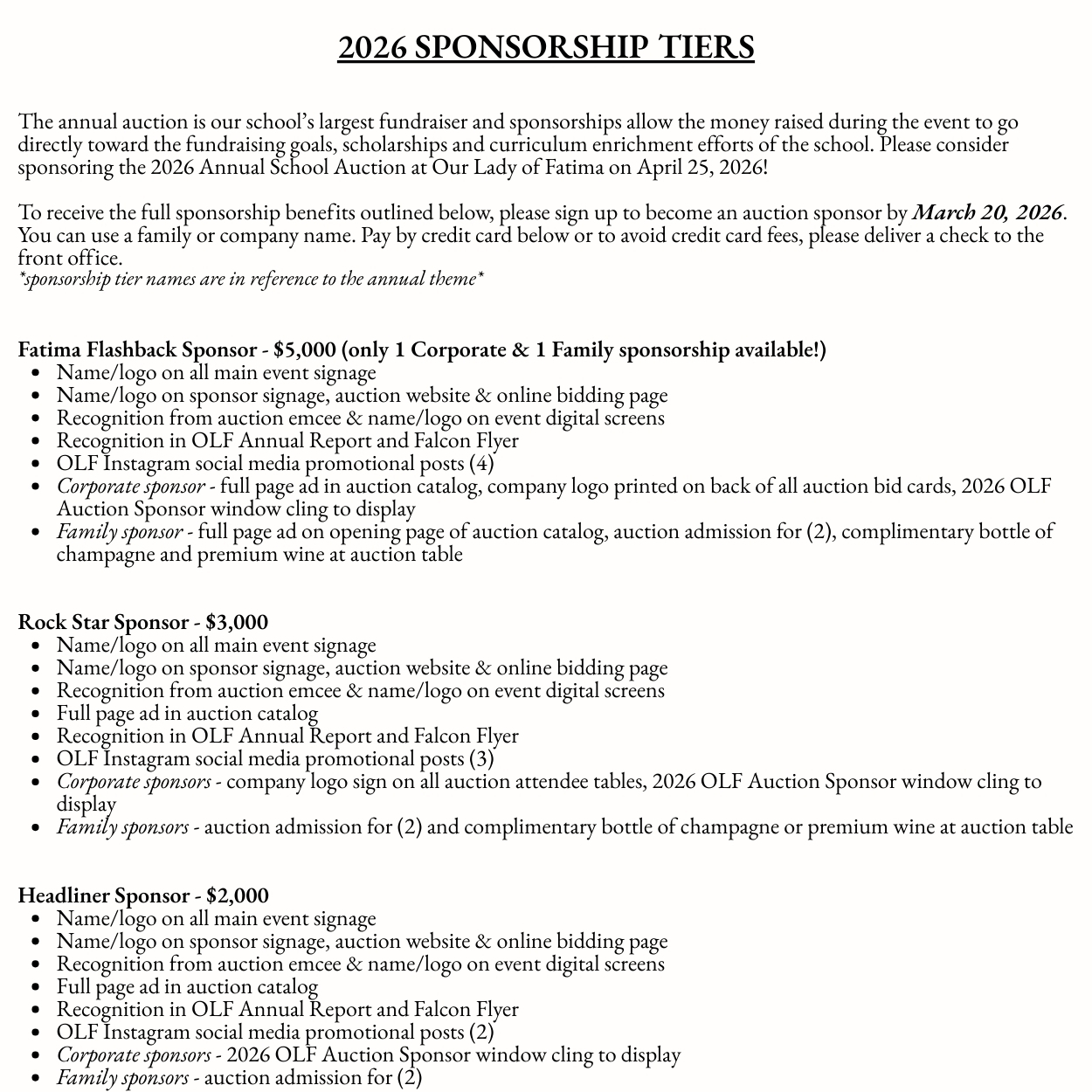 I authorize Our Lady of Fatima - Seattle to use the credit card entered on the submission page at event Test Copy of Auction 2026. Once the transaction has completed successfully, a confirmation receipt will be sent to the email address entered.